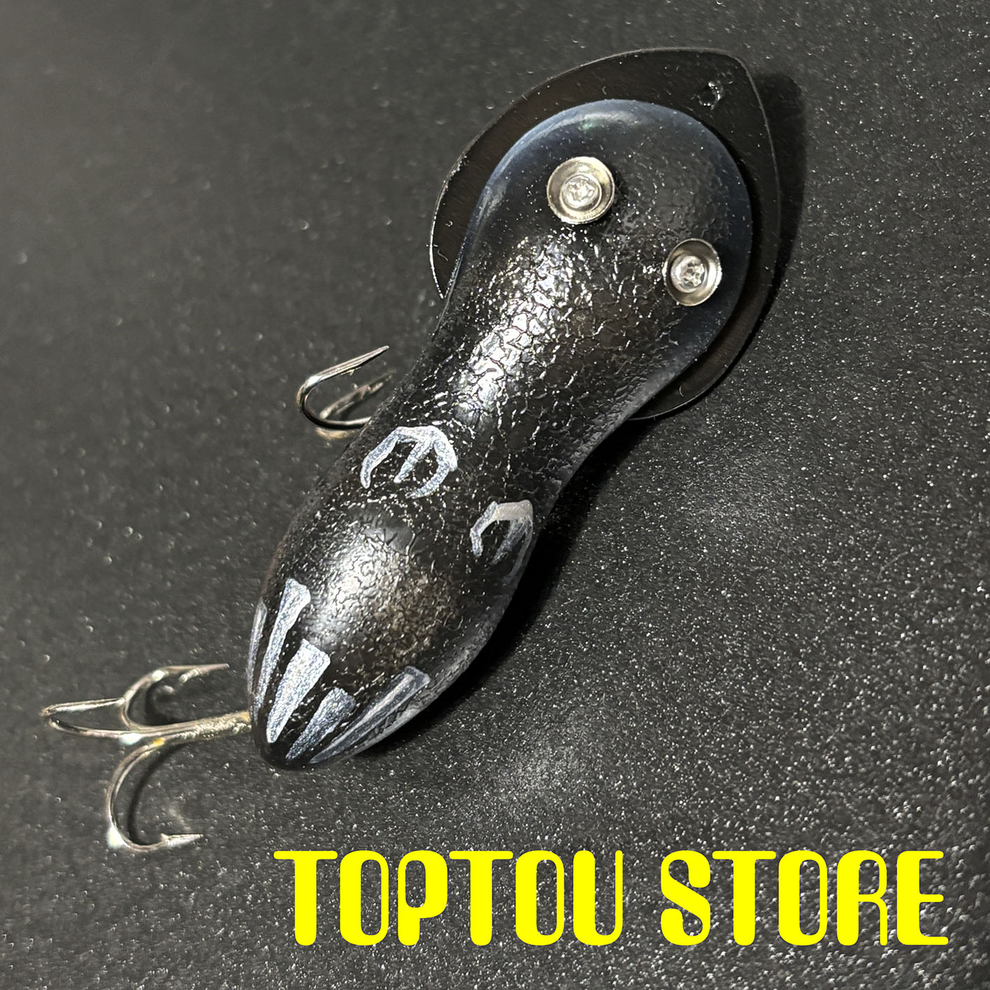ボディ素材は発泡樹脂でリップはプラスチックです。このルアーで50アップを釣ったことがないので、もしかしたらあまりに巨大な魚をかけたら破壊されちゃうかもしれませんが、リップにスナップを通した状態でペンチで思い切り引っ張っても壊れませんでしたのでたぶん大丈夫。僕は44センチのバスを釣りましたがまったく問題なかったです。ま、壊れてしまったらご連絡くだされば修理しますので。